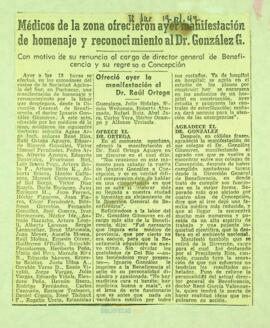 Médicos de la zona ofrecieron ayer manifestación de homenaje y reconocimiento al Dr. González G. |